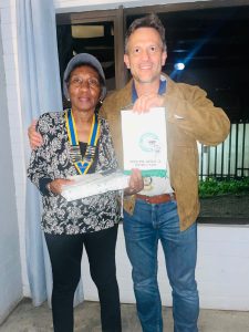 In addition, some Awards were handed out. Esti Rademeyer was awarded Rotarian of the Year, and both Daria Gorbaszewicz and Robin Gardner were given Paul Harris Recognition badges. Paul Harris Awards for non-Rotarians were given to Koos Smit in recognition of his company's amazing sponsorship support over many years and Bronwyn Egan for her involvement in our Makgeng Hiking Trail and also in the local soccer teams.
