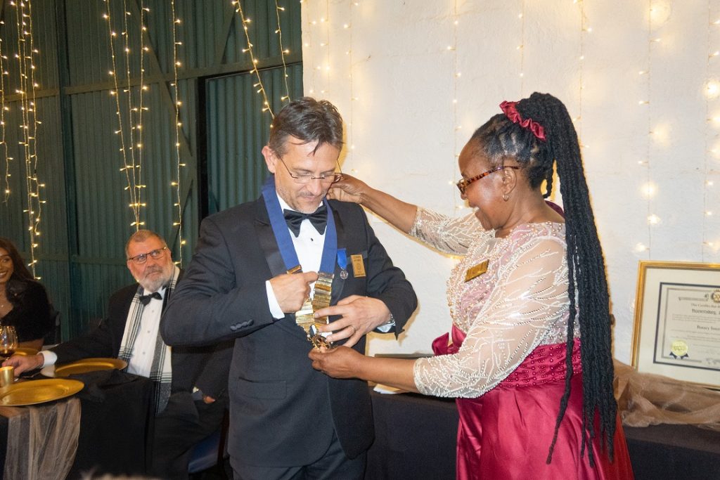 In addition, some Awards were handed out. Esti Rademeyer was awarded Rotarian of the Year, and both Daria Gorbaszewicz and Robin Gardner were given Paul Harris Recognition badges. Paul Harris Awards for non-Rotarians were given to Koos Smit in recognition of his company's amazing sponsorship support over many years and Bronwyn Egan for her involvement in our Makgeng Hiking Trail and also in the local soccer teams.